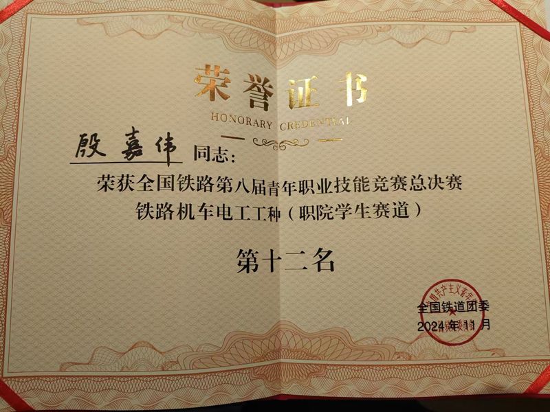 铁路机车电工赛项获奖证书