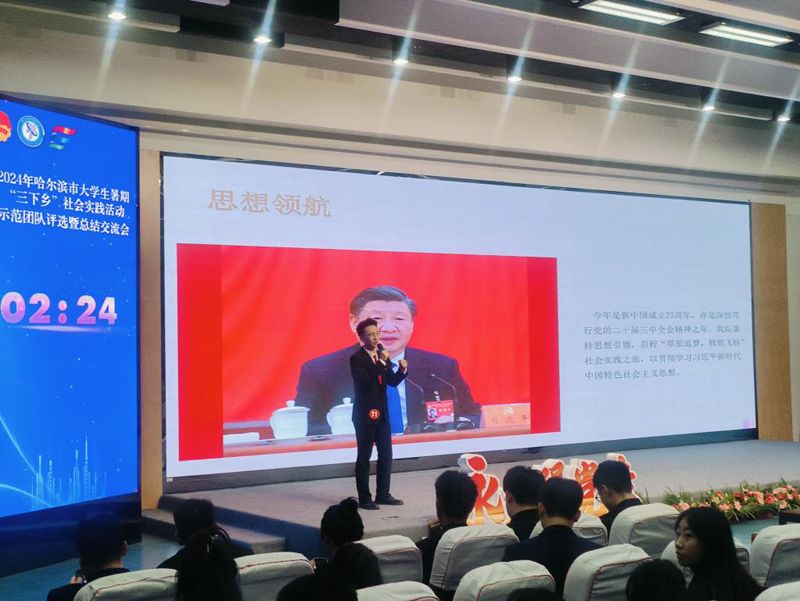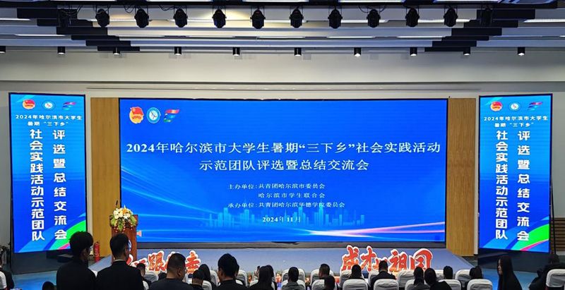 2024年11月18日团市委举办的哈尔滨市大学生暑期“三下乡”社会实践活动示范团队评选暨总结交流会在哈尔滨华德学院隆重举行。