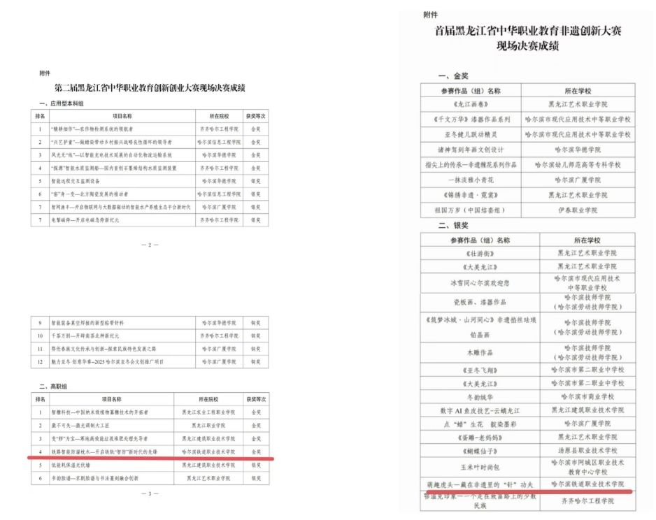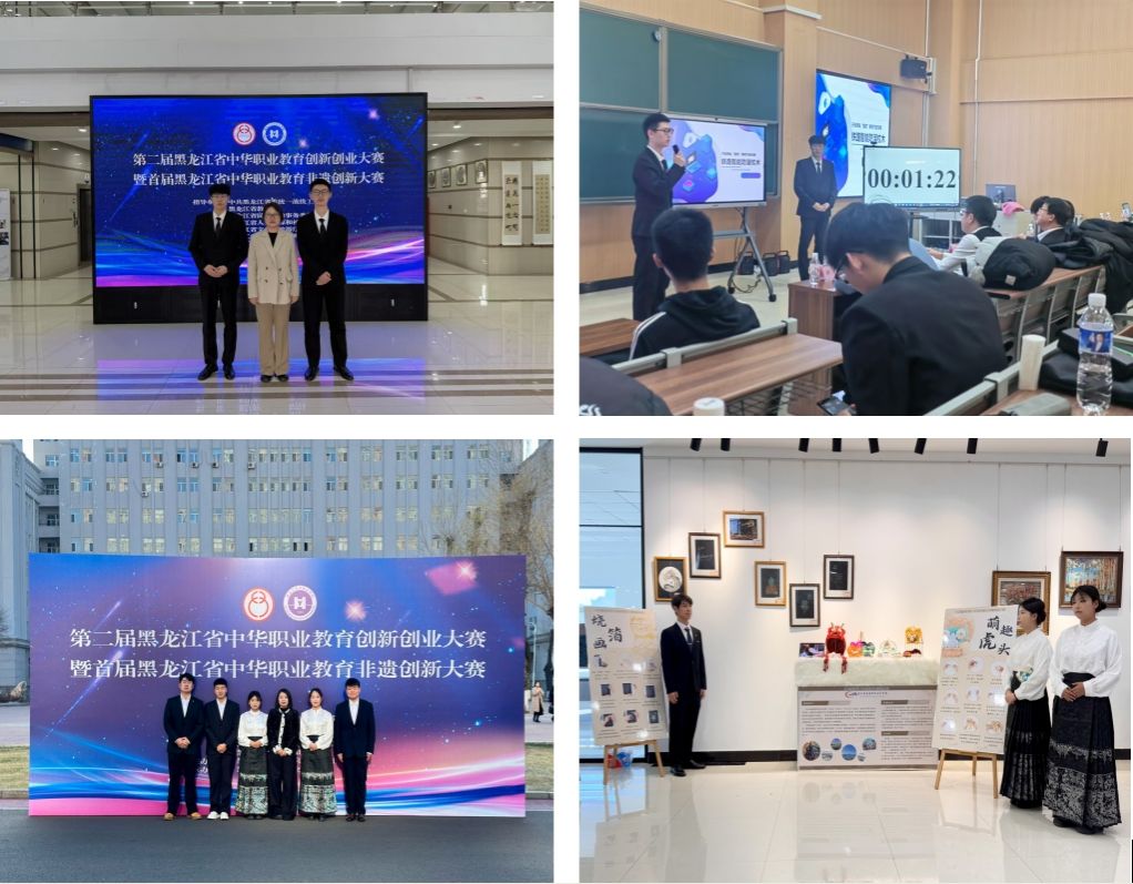 近日,由省委统战部、省教育厅、省民宗委、省人社厅、省文旅厅指导,省中华职业教育社主办,黑龙江艺术职业学院承办的第二届黑龙江省中华职业教育创新创业大赛暨首届黑龙江省中华职业教育非遗创新大赛在哈尔滨圆满落下帷幕。我院杨巍、孟艺雯指导双创赛项参赛选手聂钰杰、李腾俊等七名选手获得高职组金奖。肖雨思指导非遗创新赛项选手潘静雯、张思滢、郭孟宇等五名学生获得决赛银奖。