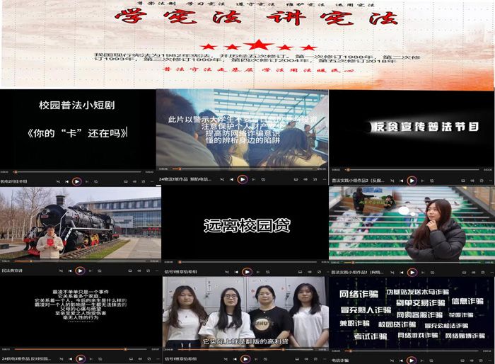 宪法宣传周期间,学院积极引导学生以各种形式开展校内普法活动。有的学生还精心创作并拍摄了一系列以宪法为主题的短剧和相声,这些作品以幽默诙谐的风格,生动展现了宪法在日常生活场景中的实际应用,使同学们在欢声笑语中,法治意识得到了显著增强;有的学生通过诵读方式,用坚定有力、掷地有声的朗读,传达出对宪法的敬重与尊崇,尽显对宪法的敬畏之心等。
