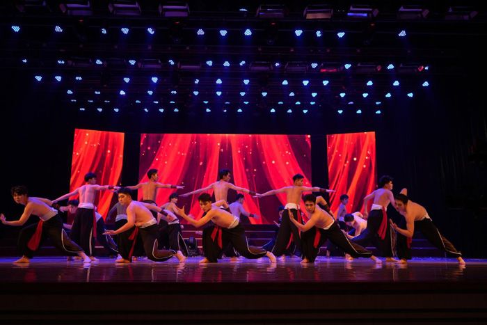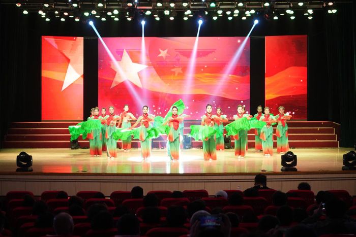 无论是慷慨激昂的旋律还是催人奋进的舞蹈都让人感受到同学们对爱党爱国情感的深刻理解与真挚表达。在聚光灯下每支舞蹈都宛如一部震撼人心的史诗画卷徐徐展开。舞者们的身姿似灵动的火焰,每一次跳跃、旋转与振臂,都仿佛在诉说着对祖国山河的眷恋与热爱。