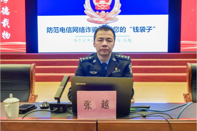 平房区平新派出所副所长张越以《从防诈反诈预防网络诈骗谈维护社会稳定》为题,结合最新案例,深入剖析了“兼职刷单”“杀猪盘”等校园高发诈骗套路,引导师生树立正确的金融安全理念,增强反诈骗风险意识。