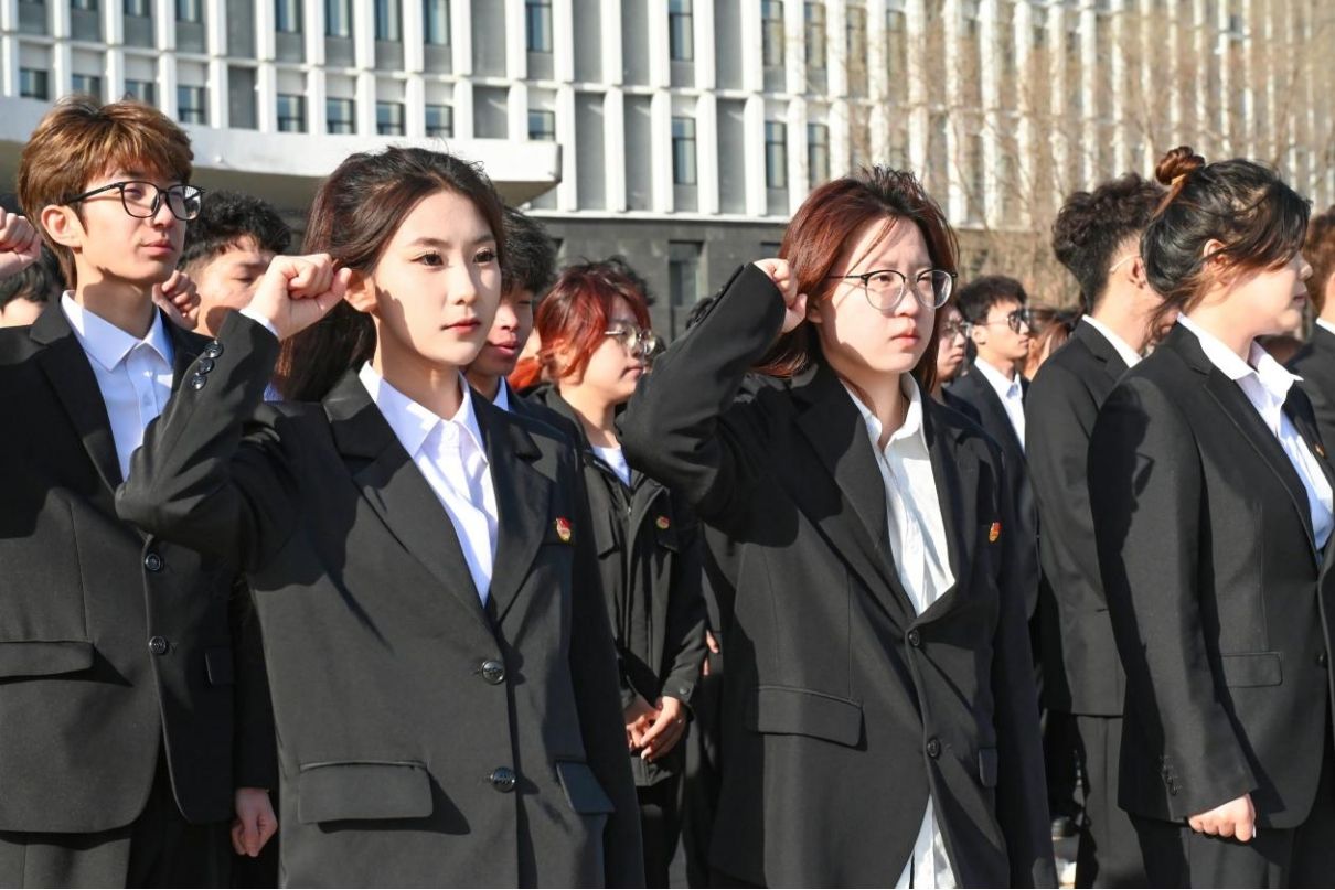 团委副书记匡天资带领24级全体团员重温入团誓词,通过沉浸式的仪式感,让团员青年在重温誓词中不忘初心、坚定方向,牢记使命、勇于担当,将“共青团员”的身份从“荣誉标签”升华为“信仰徽章”。