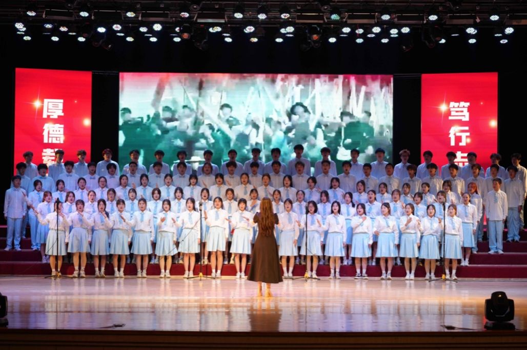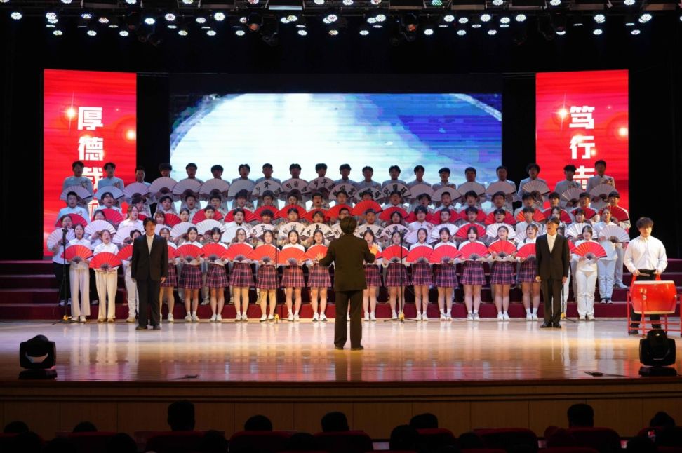 表彰大会圆满落幕之后,一场洋溢着青春热血与家国情怀的大合唱汇演接续上演,各分院学子以歌声为笔,共绘华彩乐章。机电学院深情献唱《紫荆花盛开》,其旋律如紫荆花般温柔绽放,传递着团结与希望;转而又以激昂的《上春山》引领听众攀越梦想之巅,尽显青春无畏。
