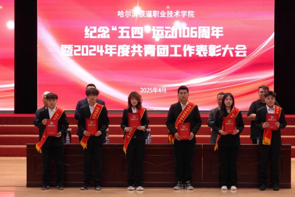 会上,副院长王璐、副院长马绍南、副院长王天一分别宣读《beats365官网2024年度“五四”评选表彰个人和集体的决定》,表彰了优秀共青团员、优秀共青团干部、优秀学生会干部、社会实践先进个人、优秀志愿者个人、校园文化先进个人、青年岗位能手等625名个人,五四红旗团支部、社会实践先进集体、志愿服务优秀集体、青年文明号等26个集体 授予程玉娟等7名教师“beats365官网青年岗位能手”称号。机电学院王学生王言毓、教师代表李月娇、铁建学院团总支书记李佳富分别代表受表彰的先进个人和集体发言。