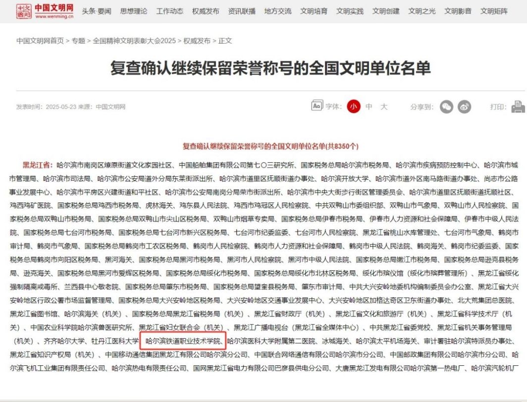 站在新的历史起点,学院将继续坚守“为党育人、为国育才”的初心使命,以更高站位、更实举措推动精神文明建设与学院各项事业发展同频共振,努力为服务龙江振兴和交通强国战略贡献更大力量。