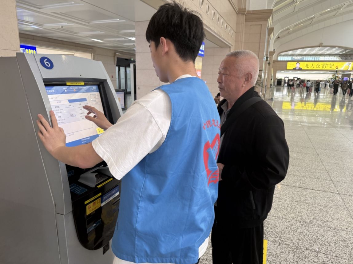在站台和候车区,志愿者们主动引导乘客乘降、候车。他们耐心地为旅客指引车厢位置,提醒大家注意安全,避免拥挤和踩踏。对于携带大量行李或行动不便的旅客,志愿者们更是主动上前帮忙,将沉重的行李搬上搬下,护送他们顺利到达候车座位。一位拄着拐杖、行动迟缓的老人,在志愿者的搀扶下,顺利登上了列车。