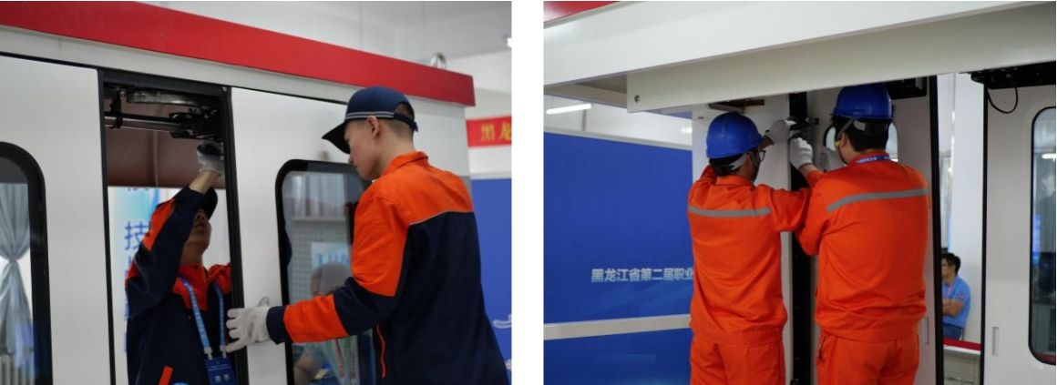 图3 客室车门的安装与调试模块竞赛现场