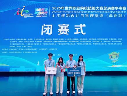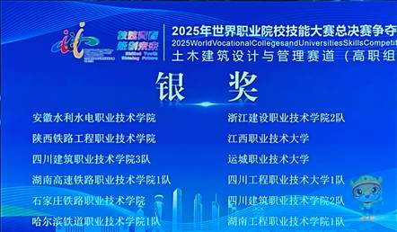 建筑工程学院任莎莎、王睿琦老师指导的李欣睿、王金鹏、黄璨、李野代表队,首次征战“土木建筑设计与管理”赛道便斩获银奖,实现我省在该赛项最高奖项的历史性突破。