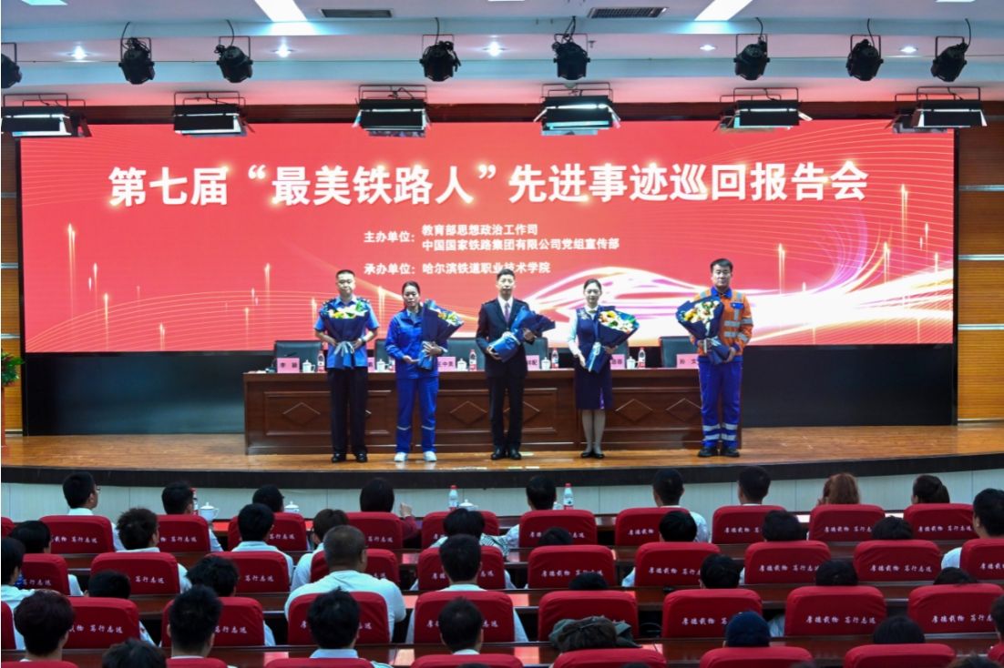 9月11日下午,由教育部思想政治工作司和国铁集团党组宣传部联合举办的第七届“最美铁路人”先进事迹巡回报告会在beats365官网隆重举行。5位报告团成员深情讲述了在铁路岗位上攻坚克难、精益求精、为民服务、执着坚守的“最美故事”。学院200余名师生代表在现场聆听“最美铁路人”的先进事迹。中国铁路哈尔滨铁路局集团公司党委宣传部(企业文化部)副部长李冬浩、部员黄伟博、学院院长孟维军、副院长马绍南出席会议,会议由学院党委书记李颖主持。