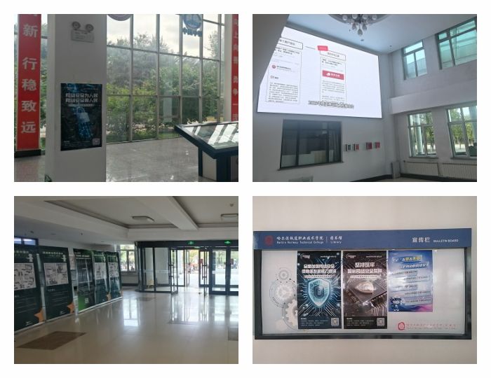 在组织集中学习的基础上,学院还精心制作了一系列主题鲜明、内容详实的宣传物料,布局于教学楼、图书馆等师生主要活动区域,营造沉浸式宣传氛围。同时,在综合楼电子大屏幕持续循环播放网络安全科普视频,通过动画演示、专家解读、案例分析等多元形式,让网络安全知识更易被师生理解与吸收。