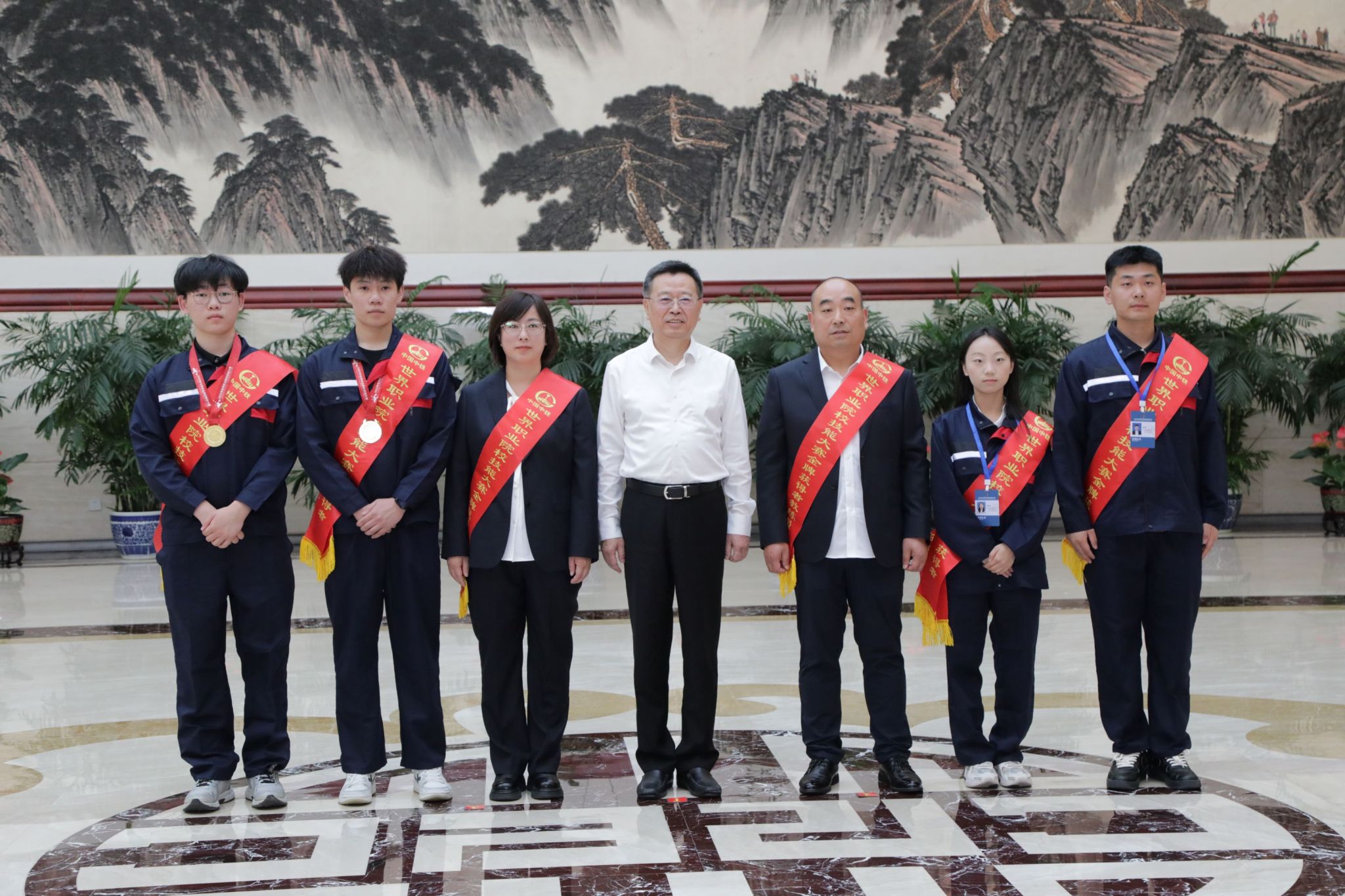 9月29日,“中国中铁2025年大国工匠、赛事金牌获得者表彰座谈会”在北京召开。我院建筑工程学院冯浩龙、尤立霞老师及孙华谦、付桂鑫、程光磊、李梦媛4名学生,凭借在2025年世界职业院校技能大赛土木建筑施工赛道的卓越表现,斩获金奖并获企业最高规格表彰。中国中铁党委副书记、工会主席、执行董事。中国中铁办公室、党委干部部、党建工作部、工会、团委等部门负责人、中铁国资党委书记等领导出席,为获奖学生颁发纪念篆刻印章。