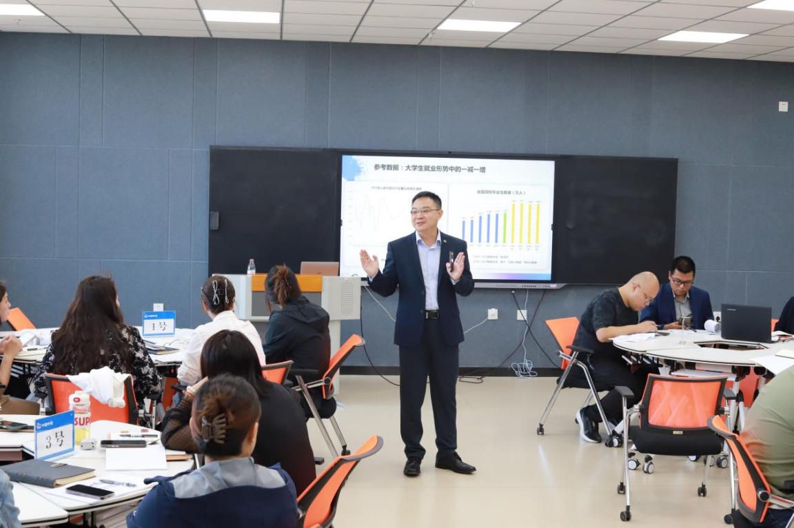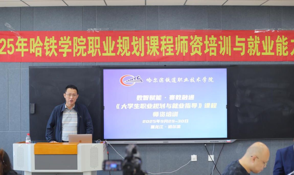 在9月29日上午的开班仪式上,学院副院长马绍南结合学院就业实际情况和当前宏观就业形势,阐述了开展职业规划课程教学的重要意义。马院长强调,职业规划课程建设是学院落实“立德树人”根本任务的重要途径,要求参训教师认真学习领悟,将培训成果转化为教学实践,不断提升就业指导服务水平。希望参训教师充分利用此次学习机会,掌握职业规划教育的前沿理念与方法,为培养契合轨道交通领域需求的优质人才贡献力量。
