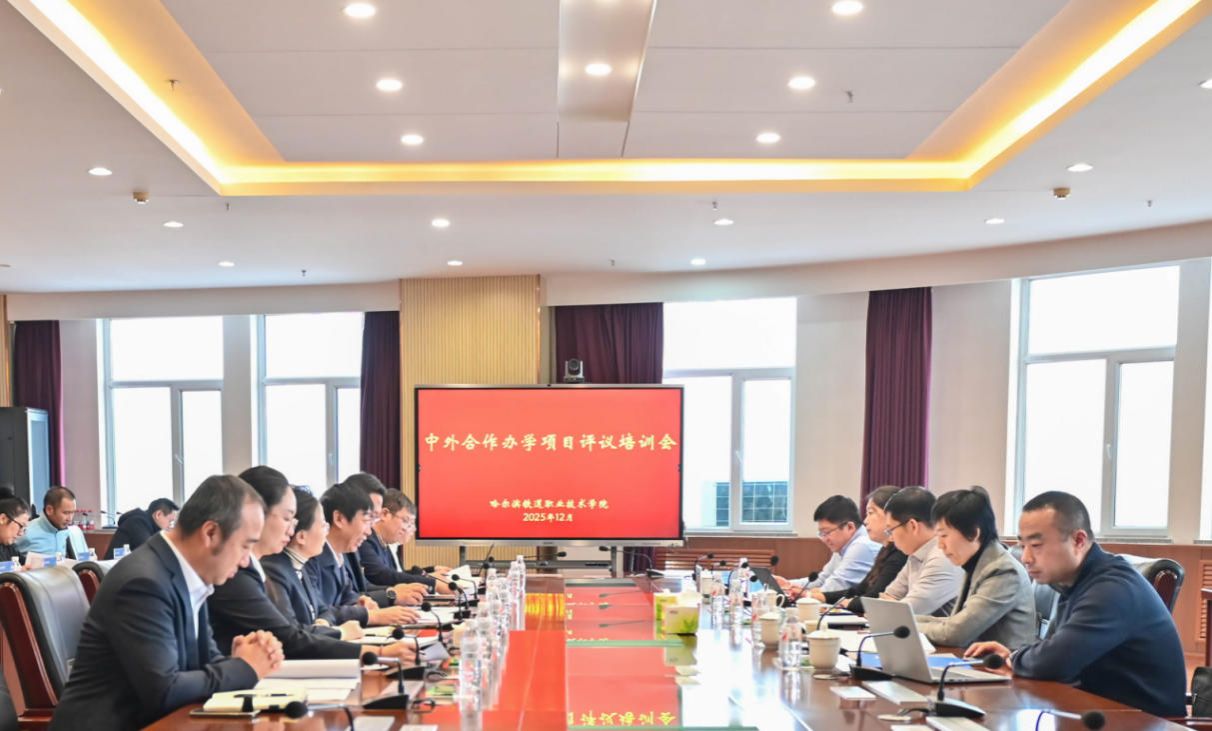 12月18日,黑龙江省中外合作办学项目评议培训会在学院顺利召开。省教育厅对外合作与交流处处长王少松、哈尔滨工业大学国际合作部外事处副处长吴昊等合作办学评审专家及省内8所高校的相关人员参加会议,学院院长孟维军出席会议并讲话。