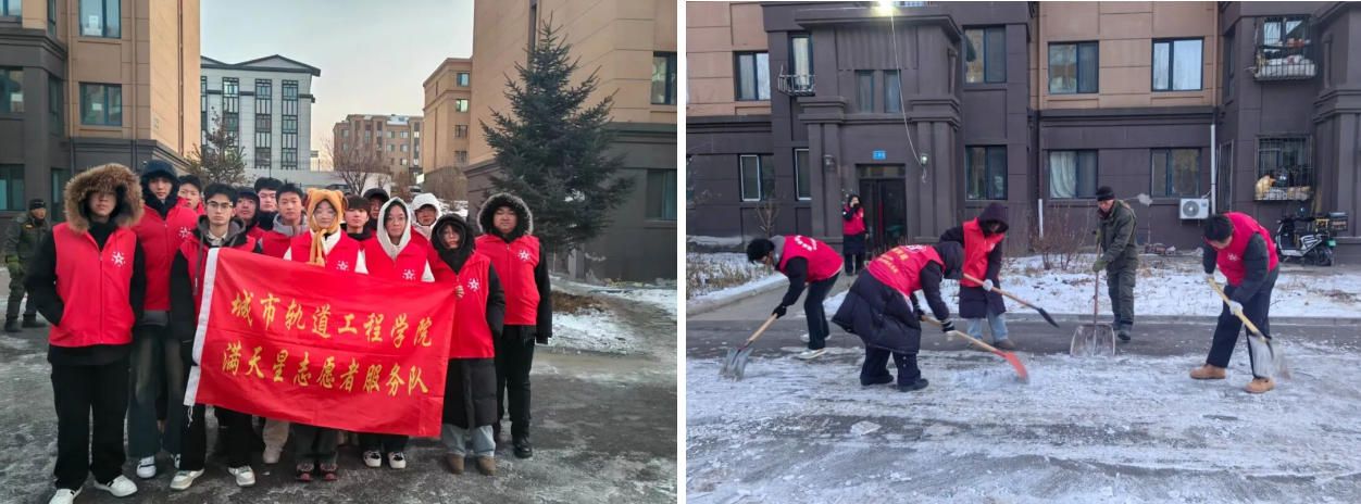 城市轨道工程学院积极开展“闻雪而动,志愿先行”志愿者活动,以实际行动践行贺信精神。2025年12月11日,城轨学院满天星志愿者服务队在团总支的带领下,联合花都社区开展帮助市民扫雪志愿服务活动。活动现场,志愿者们不畏严寒,挥舞着扫帚、铁锹等工具,认真清扫道路积雪。他们以无偿劳动践行“奉献、友爱、互助”的志愿精神,带动邻里、路人共同参与,营造了“人人为我、我为人人”的良好氛围,拉近了人与人之间的距离。