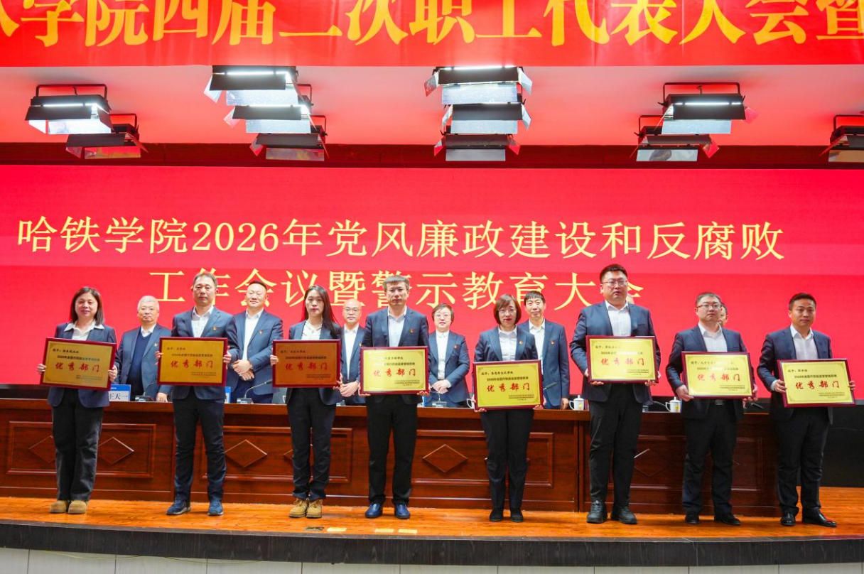 会议以深入学习贯彻习近平新时代中国特色社会主义思想,全面落实党的二十大和二十届中纪委五次全会精神,认真传达学习中铁国资党风廉政建设和反腐败工作会议暨警示教育大会精神,总结学院2025年党风廉政建设和反腐败工作,分析当前形势,部署2026年重点任务,同步开展党风廉政建设和反腐败警示教育,表彰职能监督先进集体及个人,签订《责任书》《承诺书》,为学院“十五五”规划谋篇布局和高质量发展提供坚强纪律保障。