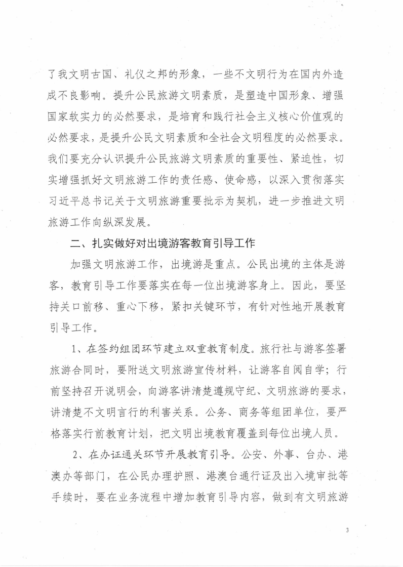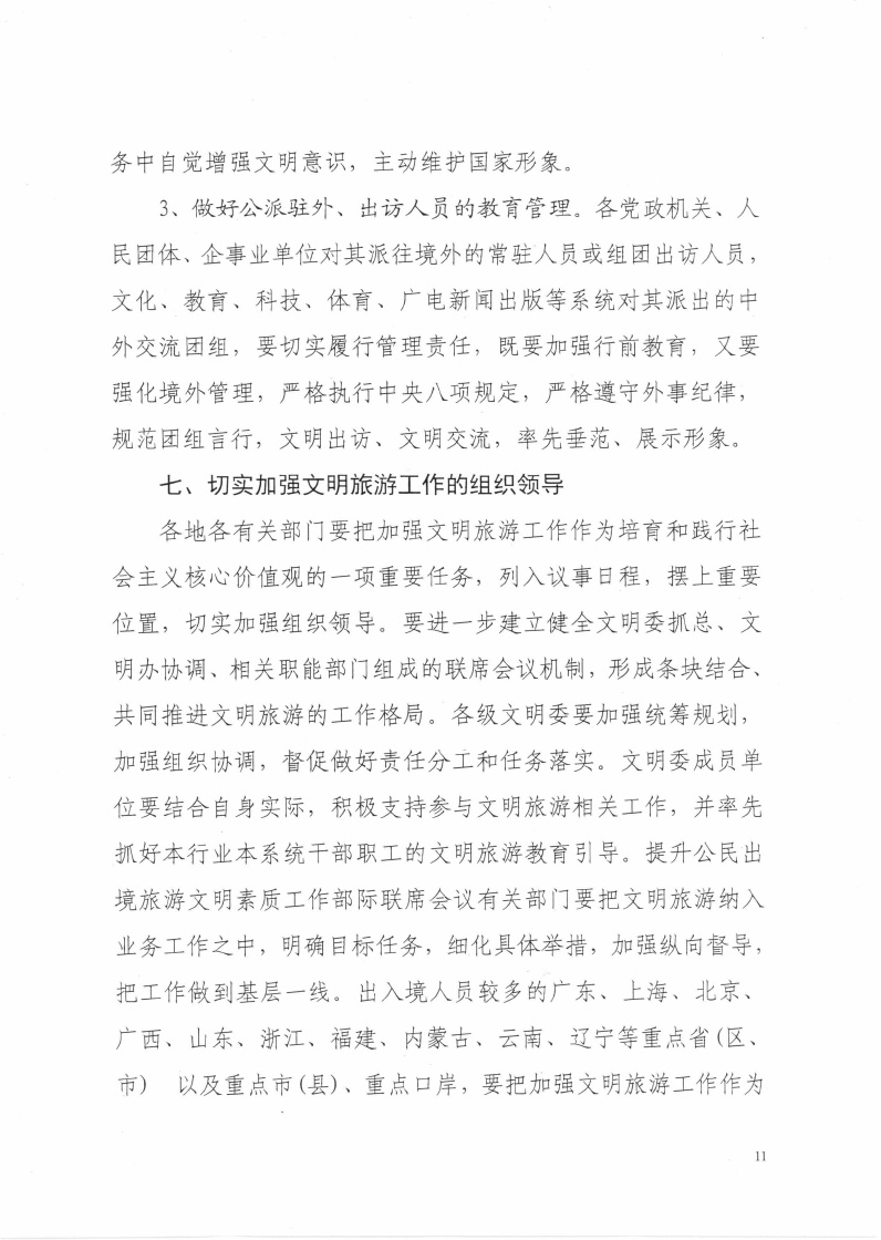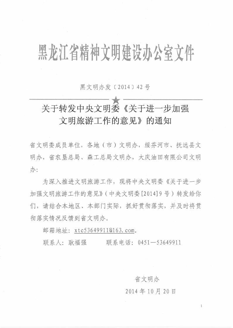 关于转发中央文明委《关于进一步加强文明旅游工作的意见》的通知
