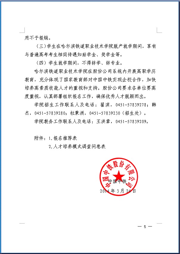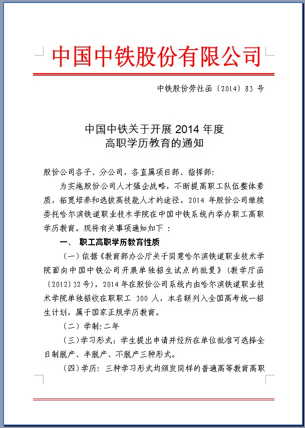 中国中铁关于开展2014年度高职学历教育的通知(图)
