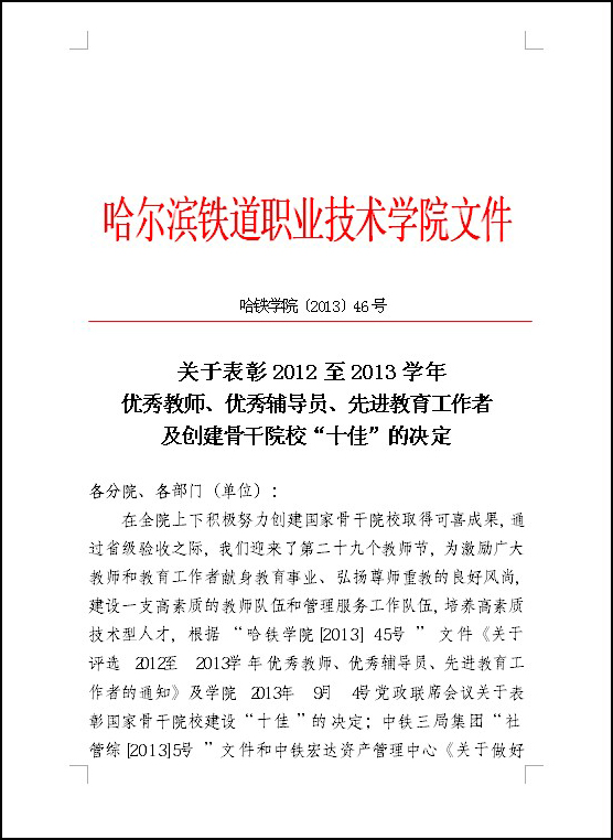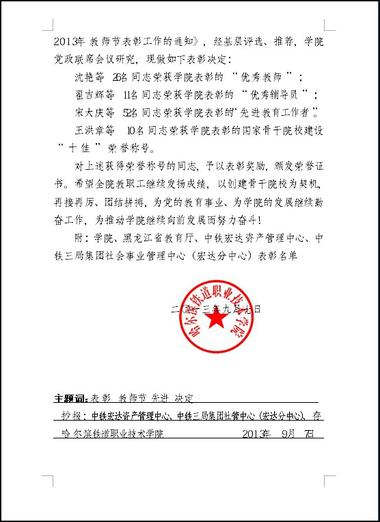 关于表彰2012至2013学年优秀教师、优秀辅导员、先进教育工作者及创建骨干院校“十佳”的决定(图)