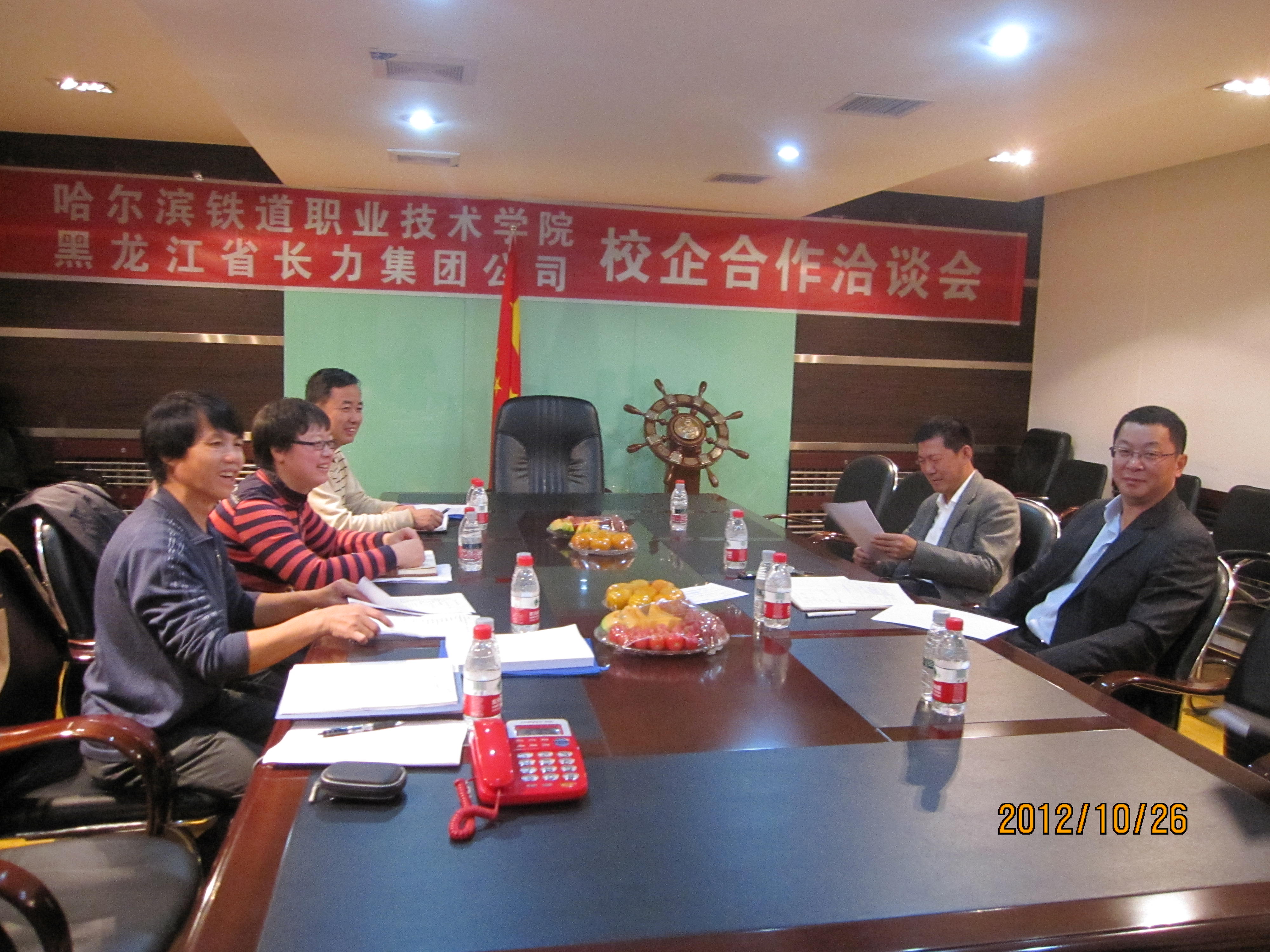 2012年10月26日,beats365官网副院长、骨干院校建设办主任李颖、副主任王洪章、生产教学双向服务平台项目负责人费学军、工程造价专业及专业群项目负责人刘玉新一行四人到黑龙江省长力建设有限公司开展校企合作洽谈,长力公司董事长房如义、总经理韦庆彬、综合部主任吴艳玲、经营计划部部长翟翱、工程部部长郭志伟等参加了本次洽谈会,就工程造价专业及专业群与长力公司校企合作共建问题进行了磋商。