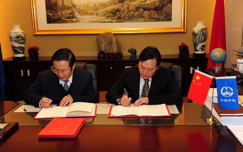 中国中铁总裁:白中仁(右)、学院院长韩仁海(左)