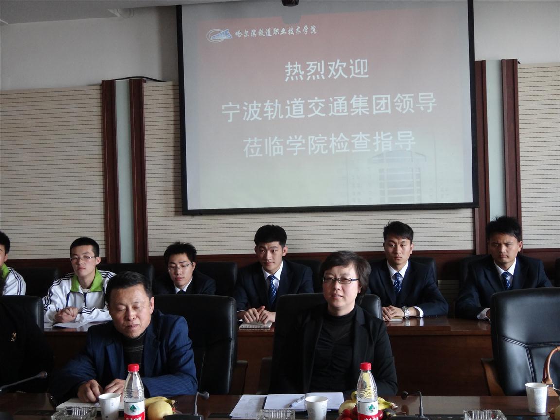 2012年5月3日至8日,宁波地铁公司副总指挥、副书记吴亚能,人力资源副处长张卓燕,人力资源部副部长占春英,工务中心副主任赵宁宁一行四人来我院对2010、2011级宁波订单班进行工作检查,同时就下一步订单培养工作做了深入交流。我院教学院长李颖、教务处处长王洪章、城轨学院院长于景臣和城轨学院副院长张冰等参加了本次为期一周的双边交流活动。